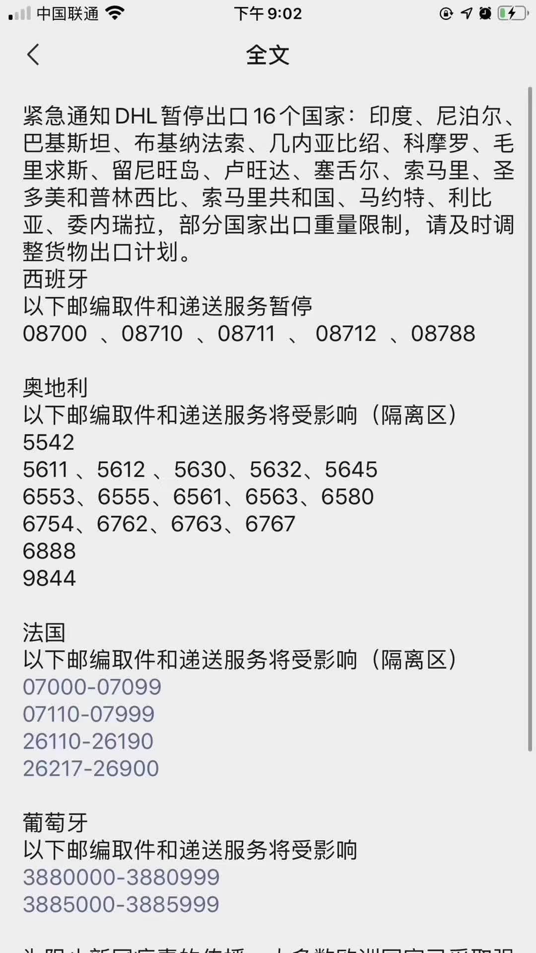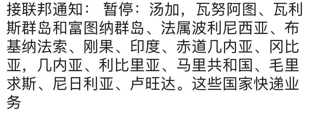 DHL和FEDEX暂停国家通知